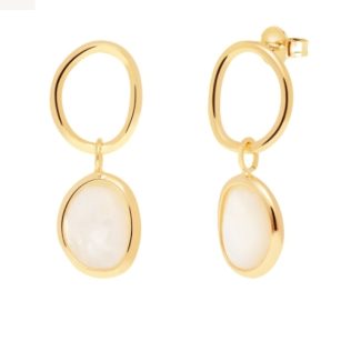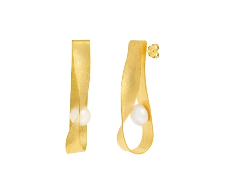 Brincos Limoncello em pratade lei, banhados a ouro amarelo com pérola natural e acabamento escovado.