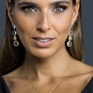 Colar Fun Lover em prata de lei, banhado em ouro amarelo, com zircónias multicolores, verde, rosa e roxo. Uma joia delicada com pendentes de variados corações, significando as várias hist