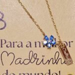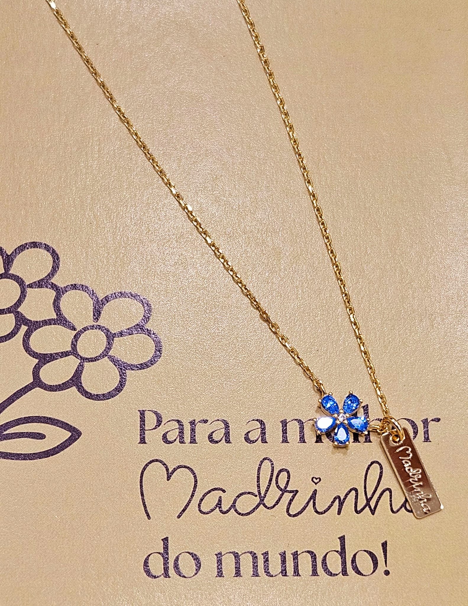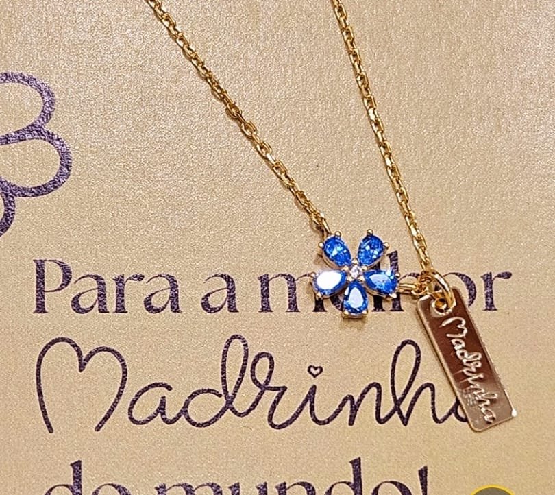 Colar em prata dourada com medalha em prata dourada e gravação e pendente com pedras de cor