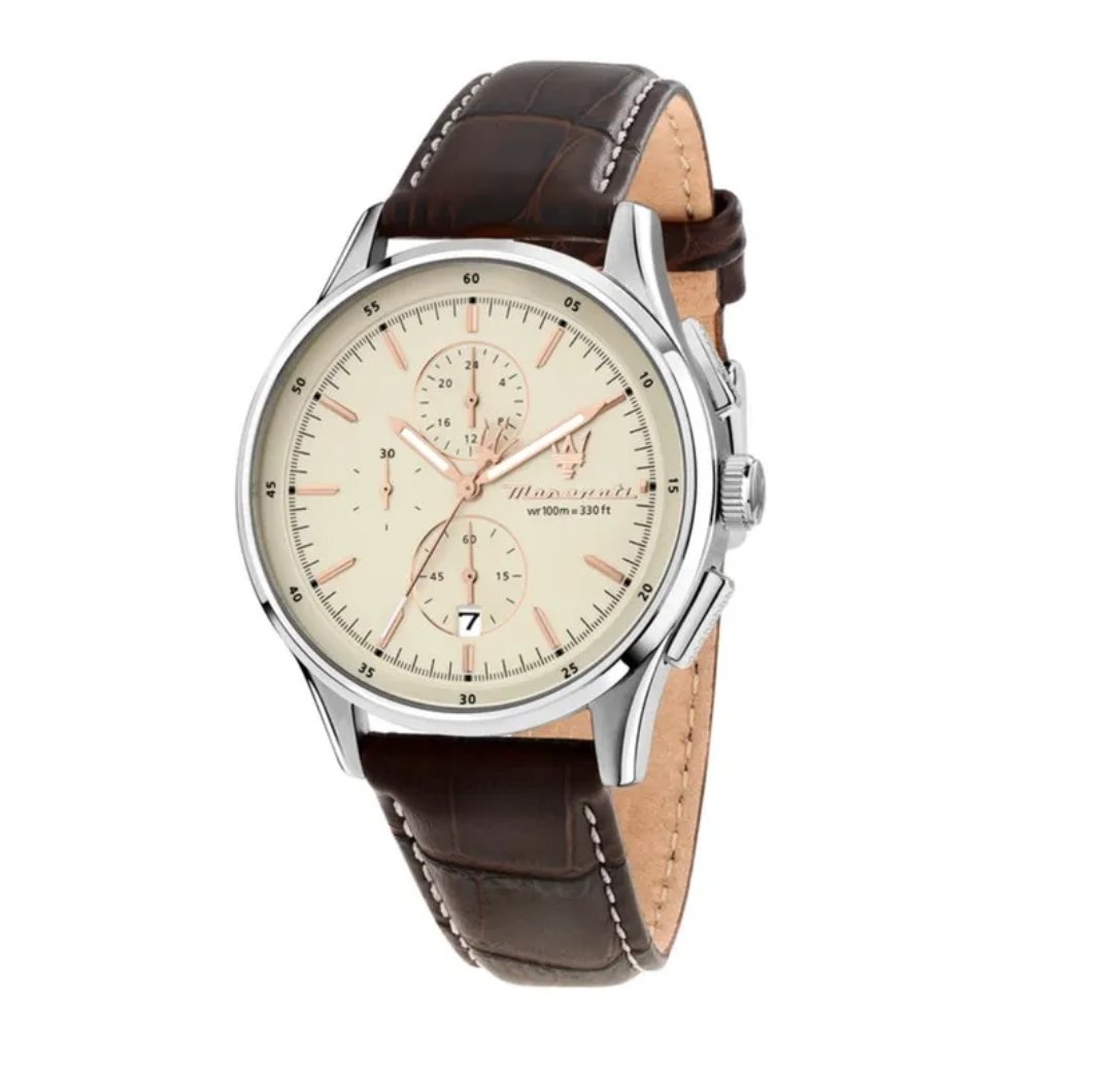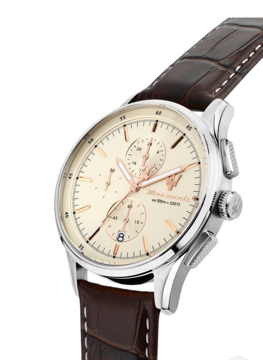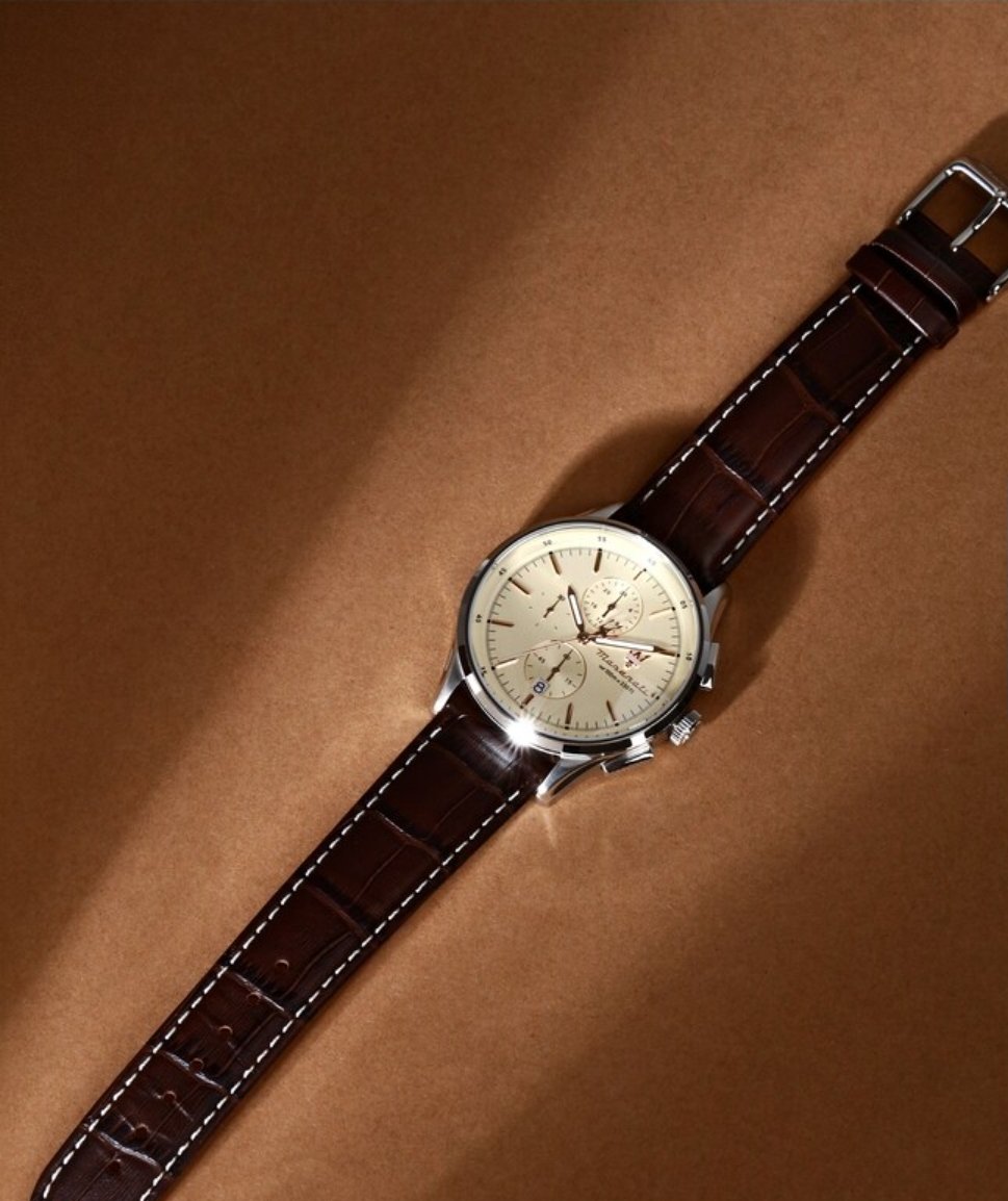 com movimento de quartzo e função de cronógrafo.