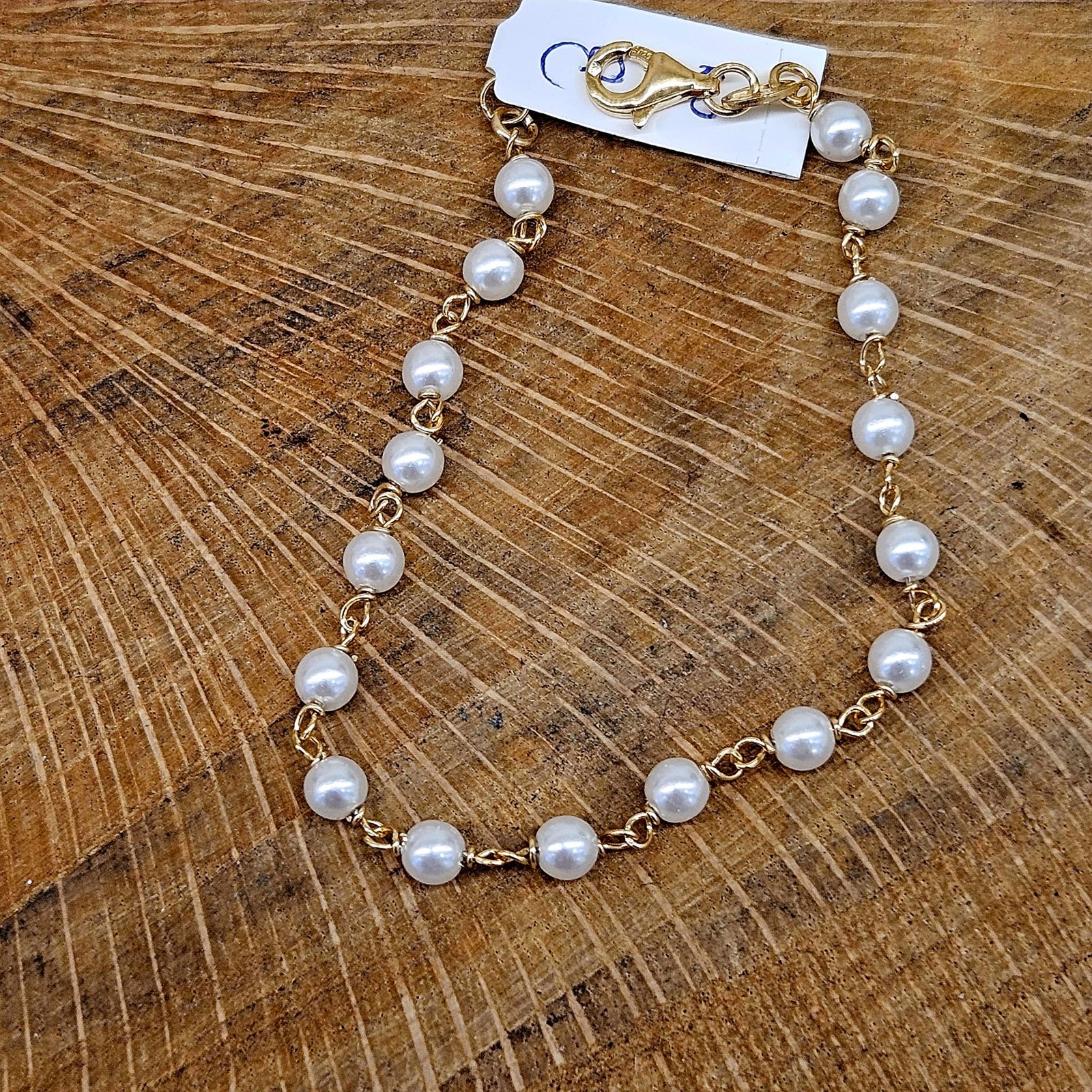 pulseira de pérolas em prata de lei, banhada a ouro amarelo.