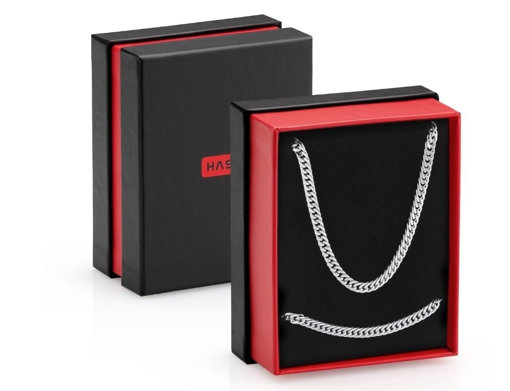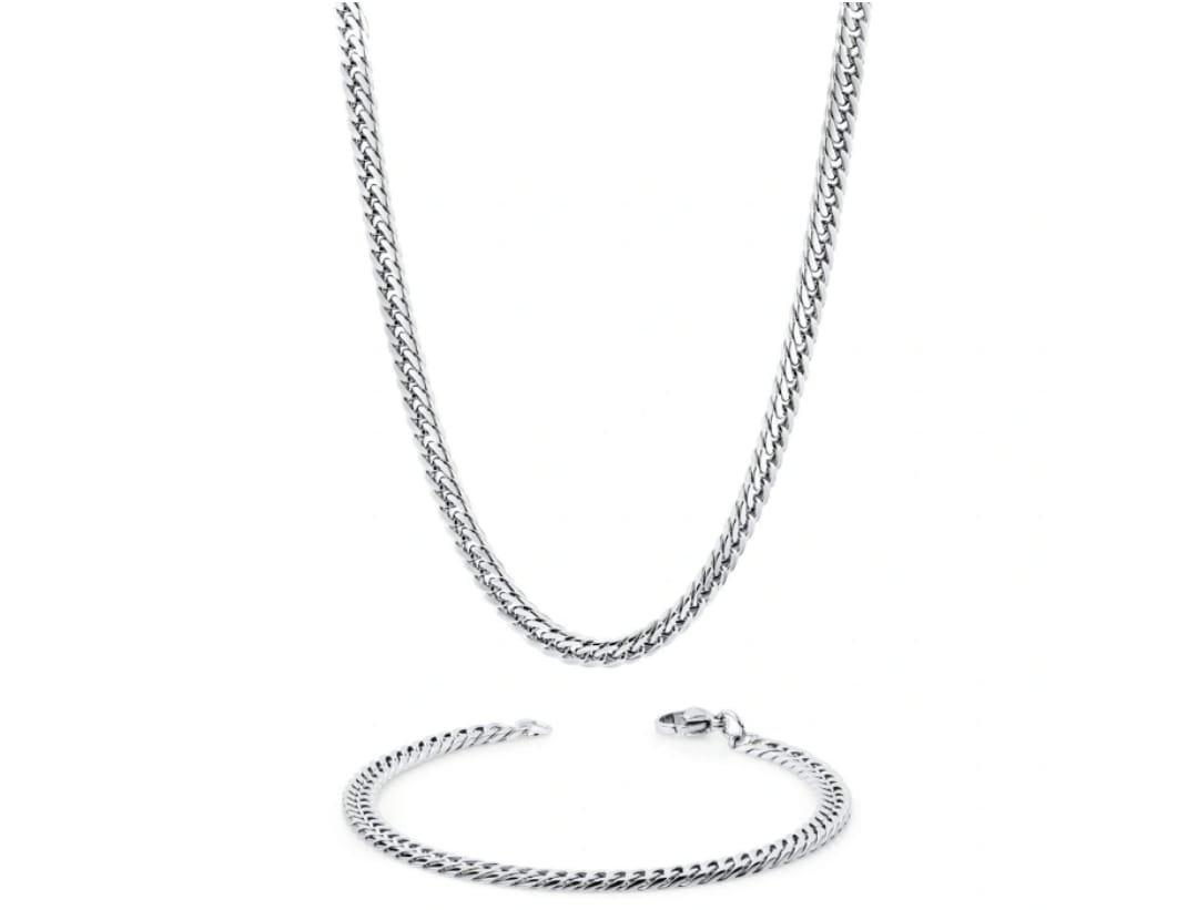 Dimensões: Pulseira: 20 cm Fio : 50 cm Largura: 0.5 cm Tipo: KITS COLEÇÕES Pedras: SEM PEDRAS Metal: AÇO